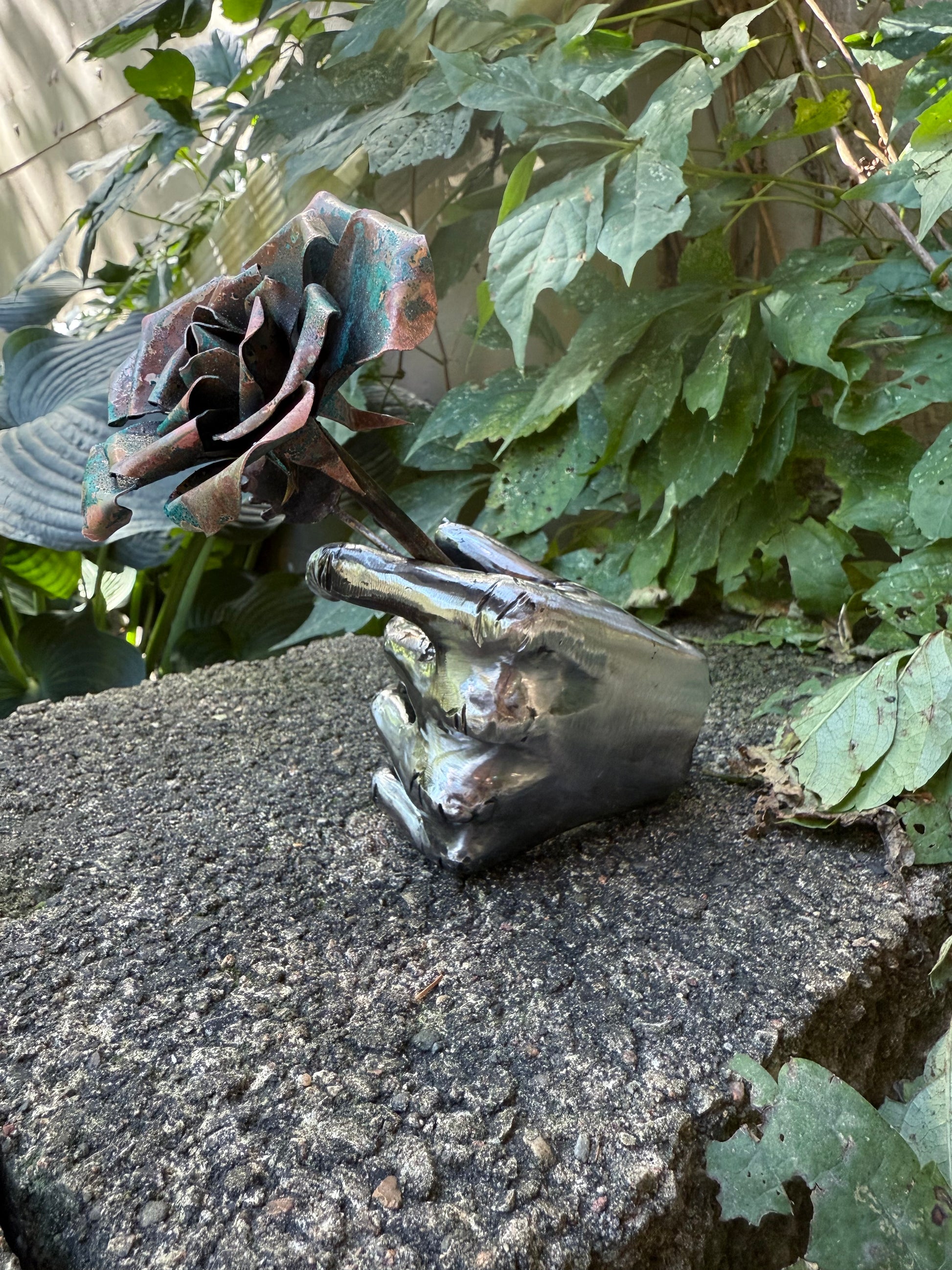 As seen on Fox and Friends! This is a one of a kind hand sculpted rose and hand. This is a pre order item, please expect 7-10 weeks to ship.